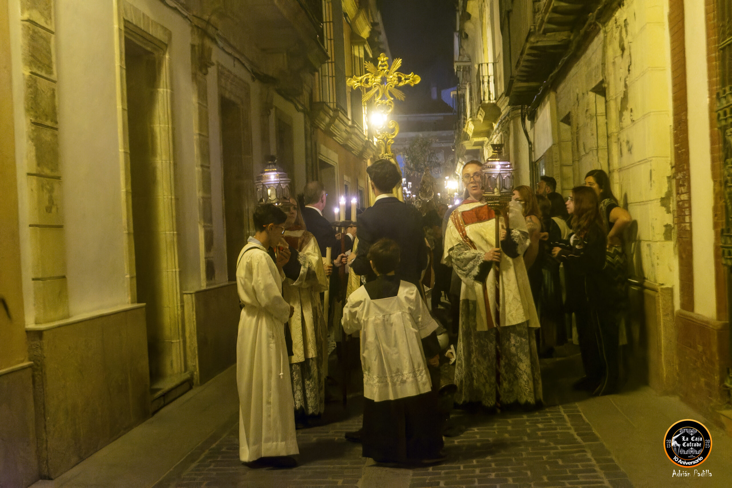 El pasado sábado 27, Jerez de la Frontera vivió con devoción la Procesión de la Divina Pastora de las Almas, venerada en el Convento de Capuchinos. La imagen recorrió las calles de la ciudad desde las 20:00 horas, siguiendo un itinerario que incluyó Divina Pastora, Sevilla, Mamelón, Gaitán, Porvera, Plaza Rafael Rivero, Tornería, Eguilaz, Larga, Rotonda de los Casinos, Bizcocheros, Antona de Dios, Plaza de San Andrés, Santa Rosa, Plaza Aladro, Eguilaz, Sevilla y Divina Pastora, culminando su recorrido a las 00:15 horas. La Agrupación Musical San Juan acompañó musicalmente a la imagen, mientras que el coro Gloria Bendita interpretó letanías y composiciones en diversos puntos del itinerario, creando un ambiente de recogimiento y fe.