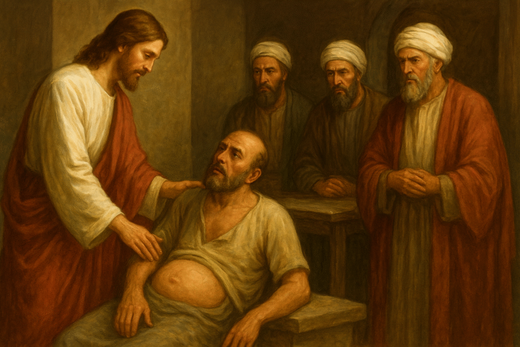 Lectura del Santo Evangelio según San Lucas 14,1-6 En sábado, entró Jesús en casa de uno de los principales fariseos para comer y ellos lo estaban espiando. Había allí, delante de él, un hombre enfermo de hidropesía, y tomando la palabra, dijo a los maestros de la ley y a los fariseos: «¿Es lícito curar…