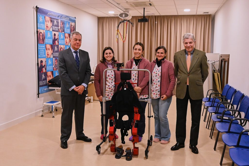 Durante su visita, el primer edil mostró un especial interés por el nuevo exoesqueleto recientemente incorporado al centro, una innovadora herramienta terapéutica que supone un importante avance en la atención y el tratamiento de los menores atendidos. El alcalde se interesó por su funcionamiento, así como por los proyectos de futuro que la Hermandad tiene previstos en el ámbito de la estimulación precoz.
