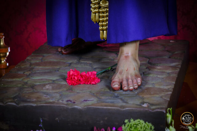 El besapiés ofreció una estampa de recogimiento y cercanía con la sagrada imagen, permitiendo a los devotos contemplar de cerca la expresividad de la talla en un montaje de culto especialmente preparado para la ocasión.