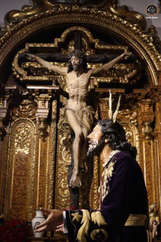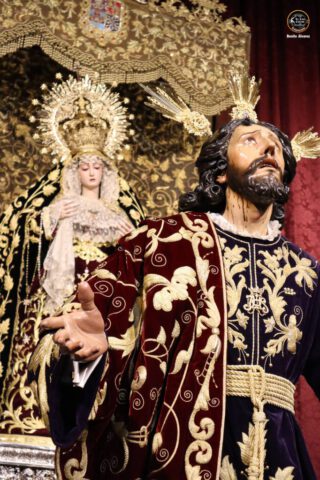 Durante estos días, la imagen del Señor, titular de la hermandad, se presentó para la contemplación y la oración de los asistentes, rodeada de un ambiente de recogimiento que refleja la intensa tradición cofrade sevillana. Este acto se enmarca dentro de los cultos previos al quinario y constituye un momento único de devoción para la corporación y sus hermanos.