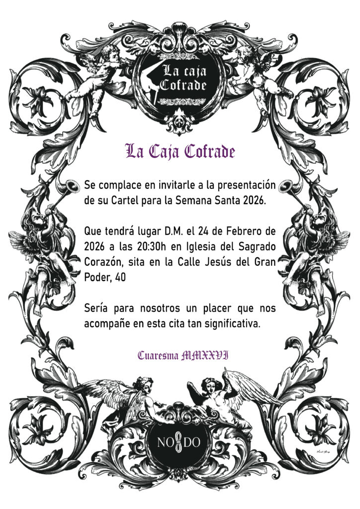 La Caja Cofrade celebrará el próximo 24 de febrero de 2026 el acto de presentación de su esperado Cartel anunciador de la Semana Santa 2026, una cita que vuelve a situarse como uno de los momentos destacados del calendario previo a la Semana Mayor.