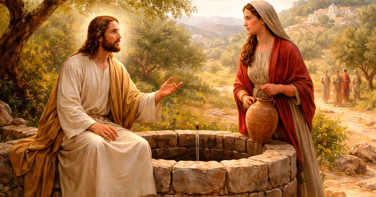 Llega una mujer de Samaria a sacar agua, y Jesús le dice: