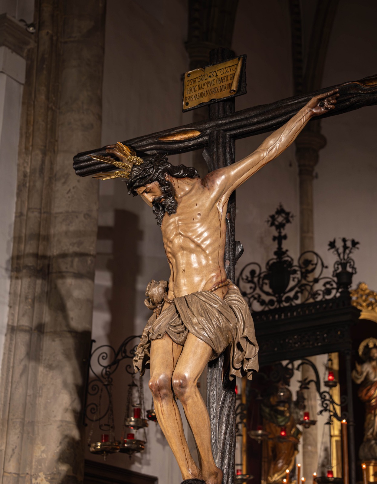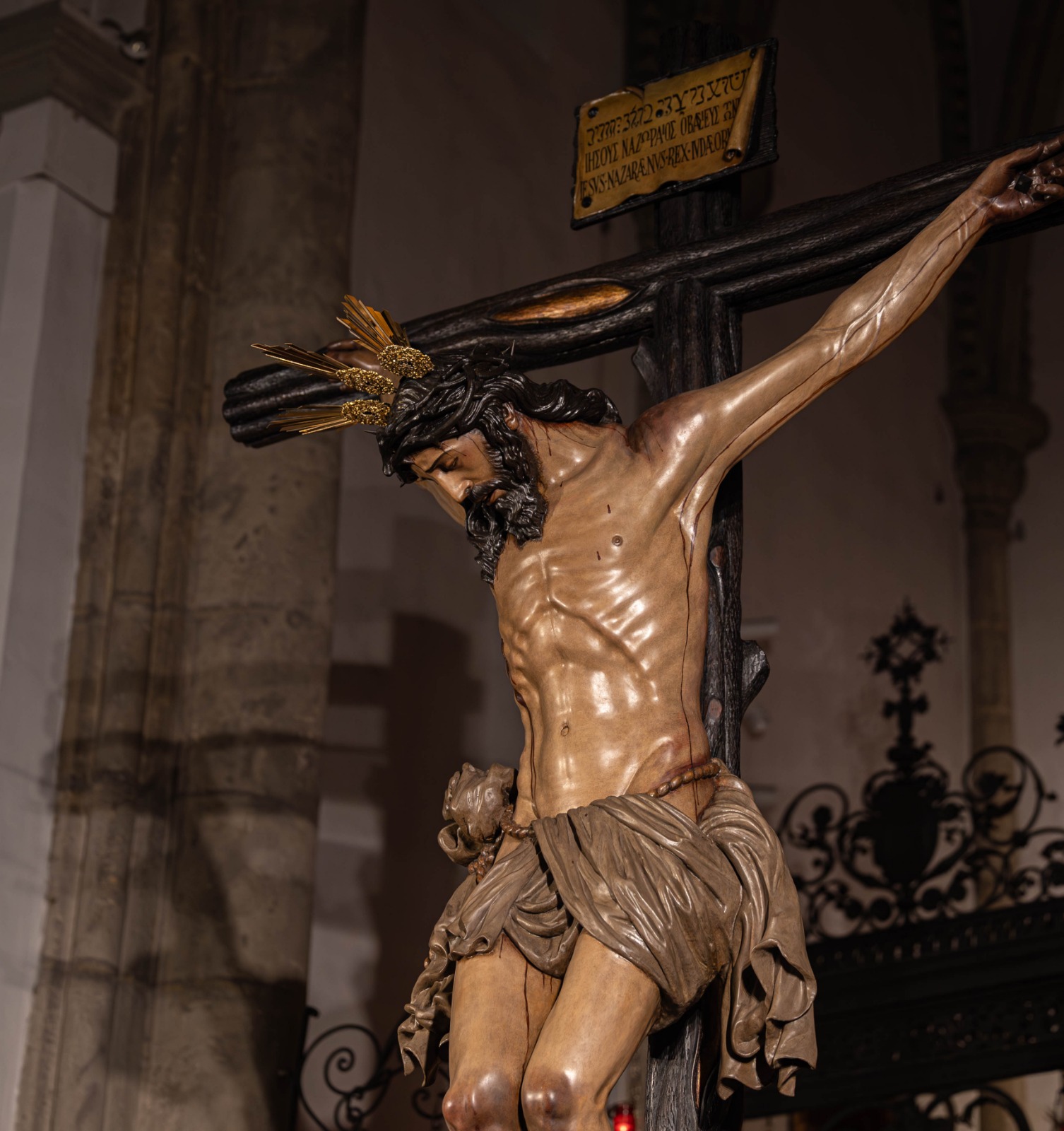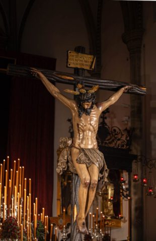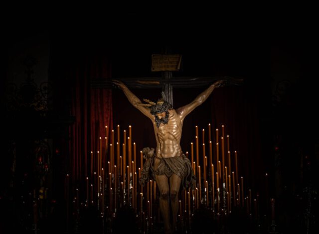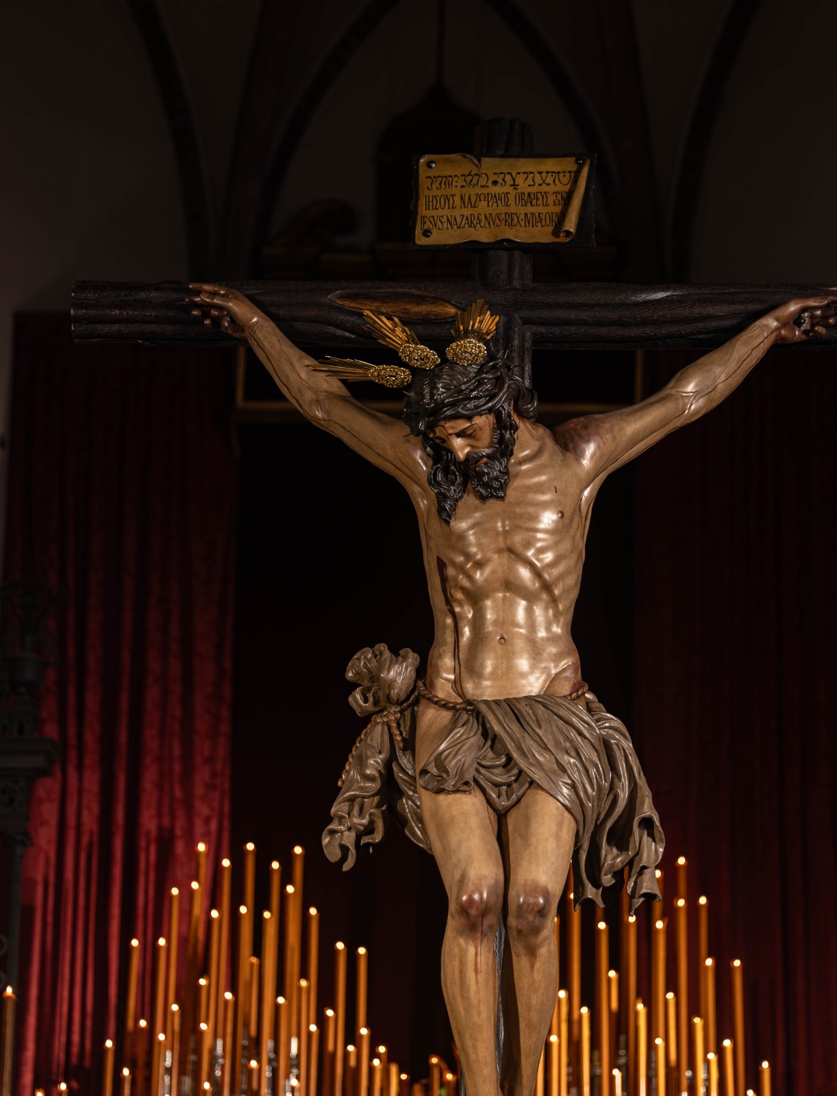 Las fotografías que componen esta galería llevan la firma de Carolina Ternero, cuyo trabajo destaca una vez más por su sensibilidad, elegancia y dominio de la luz. A través de su objetivo, la fotógrafa consigue captar no solo la estética del montaje, sino también el silencio, la oración y la emoción que envuelven al Santísimo Cristo durante sus cultos.