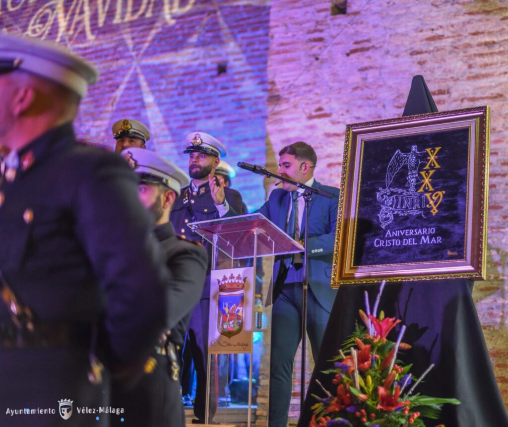 Ante más de 1.200 personas, la Plaza de la Constitución de Vélez-Málaga fue escenario de una noche inolvidable para el mundo cofrade y, muy especialmente, para José Daniel Montoro Carretero, quien presentó con brillantez el XXV Aniversario de la Banda Cristo del Mar.