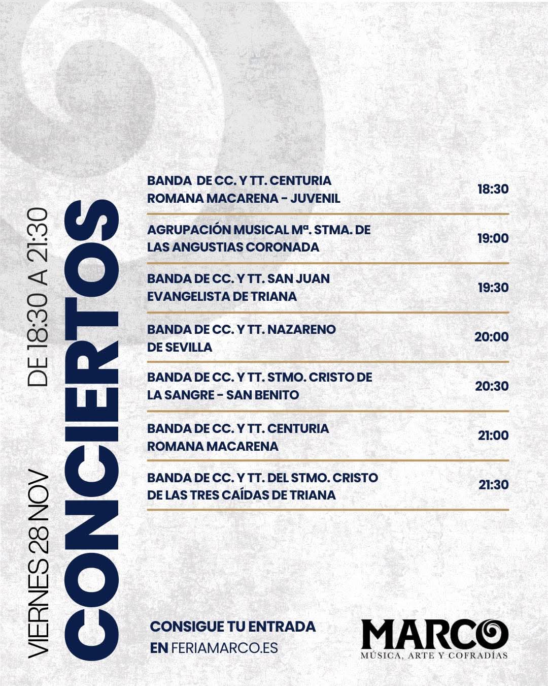 Sevilla se prepara para vivir uno de los fines de semana más intensos del panorama cofrade con la celebración de MARCO, la Feria de Música, Arte y Cofradías, que reunirá a algunas de las formaciones musicales más destacadas del país. La cita, que se desarrollará entre el viernes 28 y el domingo 30 de noviembre, ofrecerá más de 30 conciertos en directo, además de actividades paralelas y la presencia de artesanos y profesionales del sector.