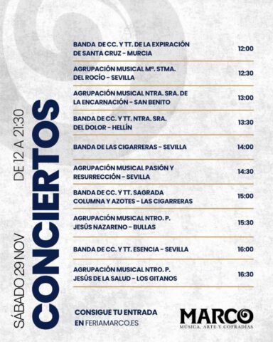 Con una programación de altísimo nivel y la participación de bandas de toda España, MARCO se consolida como una de las grandes ferias de referencia nacional para los amantes de la música cofrade, ofreciendo un fin de semana cargado de tradición, arte y sonido procesional en pleno corazón de Sevilla.