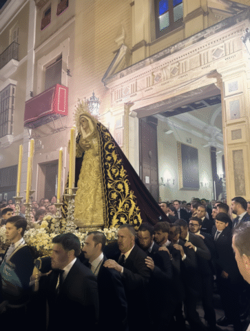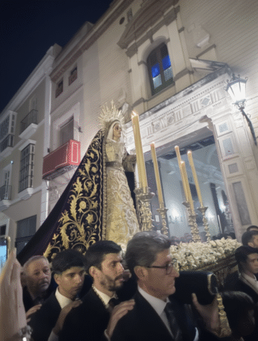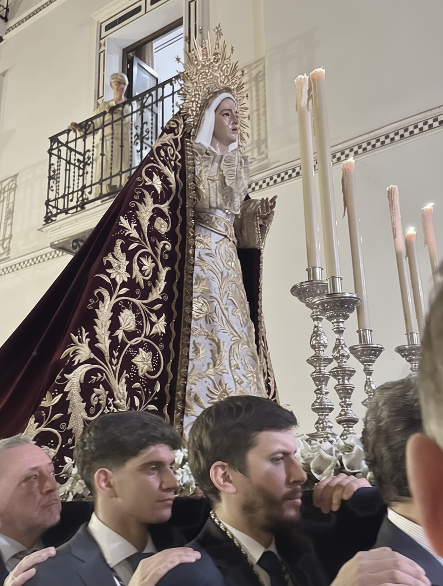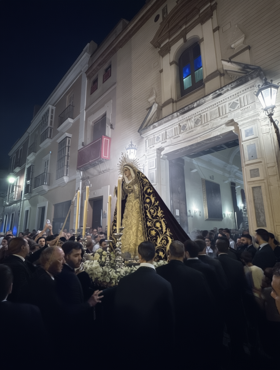 La imagen de la Virgen, obra de Francisco Antonio Eslava Rubio (1996), salió desde la Parroquia de San Vicente Mártir para recorrer un itinerario profundamente arraigado en la feligresía: Plaza de Molviedro, Castelar, Gamazo, Padre Marchena, Quirós y regreso a la Plaza de Molviedro, antes de su entrada al templo. El recorrido, prácticamente idéntico al del tradicional Vía Crucis dominical de Jesús Despojado en Cuaresma, permitió a los devotos acompañar a su Madre en un acto de oración comunitaria al atardecer.