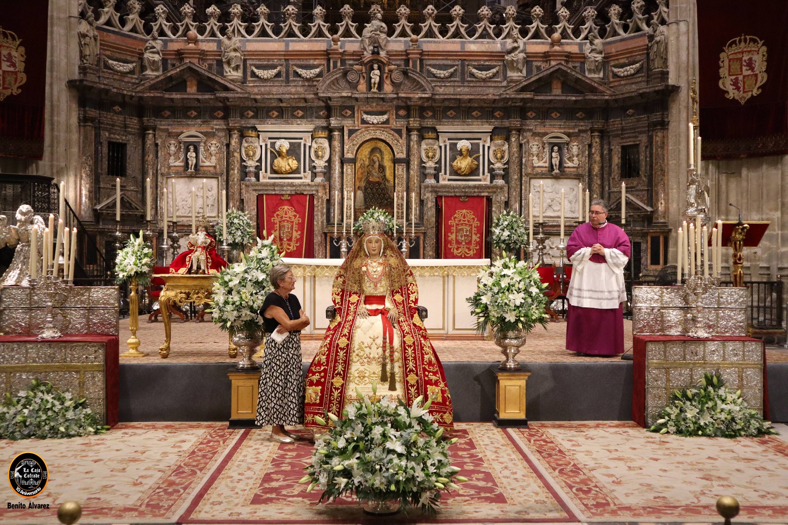 la exposición “Simpecado Concebida”, organizada por el Consejo General de Hermandades y Cofradías de Sevilla, en la sede de Sierpes del Círculo Mercantil e Industrial de Sevilla.