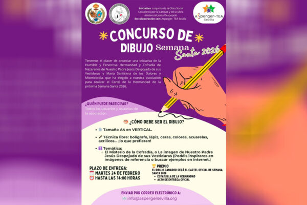La iniciativa solidaria Costaleros por la Caridad y la Obra Asistencial Jesús Despojado han anunciado que la asociación Asperger-TEA Sevilla será la encargada de realizar el cartel anunciador de la Semana Santa 2026. Bajo el lema 🟣 CARIDAD, la Hermandad ha querido destacar el carácter social del proyecto, que une el compromiso asistencial con la…